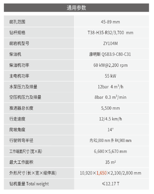 ZGYX-813掘進臺車,廣泛應(yīng)用于地下礦山開拓,小型隧道掘進,也可用于錨桿孔等加固工程。精心設(shè)計的ZGYX-813從外觀、配置、系統(tǒng)控制等各方面將提供客戶更優(yōu)質(zhì)的穿孔體驗。其基于安全考慮的底盤以及升降式安全頂棚,保證了設(shè)備的通過性與穩(wěn)定性,使操作員能夠始終處于安全的位置作業(yè);“直接”定位的鉆臂系統(tǒng)實現(xiàn)快速準確的鉆孔定位;配備的ZY104M鑿巖機功率可達20KW,其60HZ的頻率是高效鑿巖的有力保障,雙緩沖機構(gòu)減震系統(tǒng)、鉆進自動適應(yīng)系統(tǒng)提高穿透效率的同時有效的降低了鉆具的消耗,提高生產(chǎn)效率。