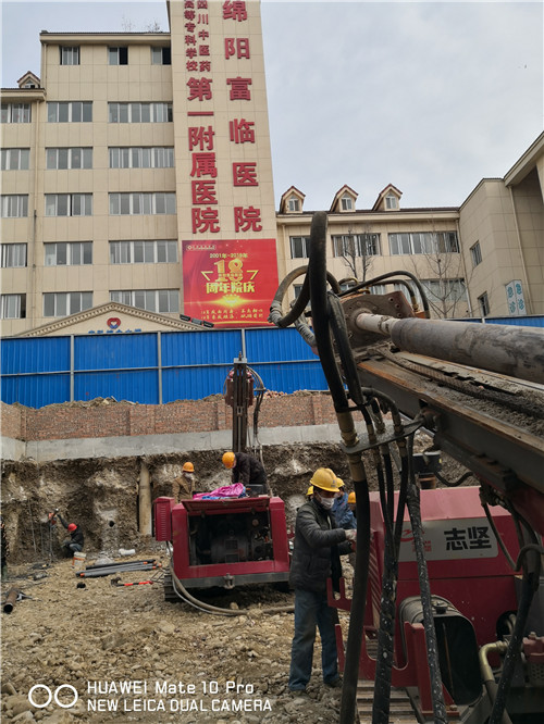 四川省綿陽富臨醫(yī)院(綿陽中藥高等專科學校第一附屬醫(yī)院)的建設(shè)中,志高機械錨固鉆機志堅F55S鉆車在現(xiàn)場從事基坑作業(yè),為醫(yī)院的建設(shè)助力。