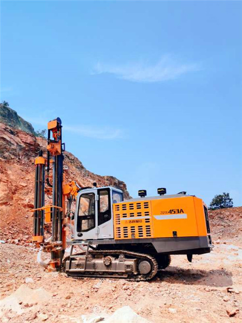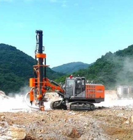 該客戶原有兩套志高410B分體式鉆機和兩套其它品牌的分體式鉆機。四臺分體式鉆機需要鉆機操作手8~10名,在設(shè)備正常出勤的情況下每天鑿巖作業(yè)米數(shù)為400米(90孔徑),在購置453A一體式自動鉆機后孔徑升級到115孔徑,每天鑿巖的米數(shù)在300左右,因此453A的高效能優(yōu)勢明顯,在爆破方量翻翻的情況下淘汰2套分體式鉆機及4個人工,每月可節(jié)省人工費3.2萬元左右,從而在采礦業(yè)同樣激烈競爭的市場中贏得了成本優(yōu)勢。