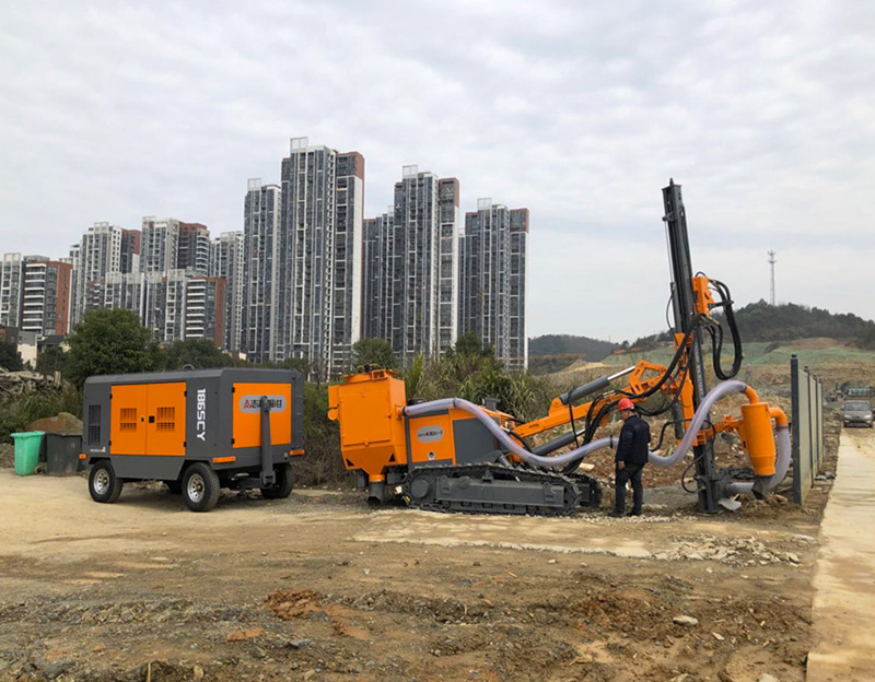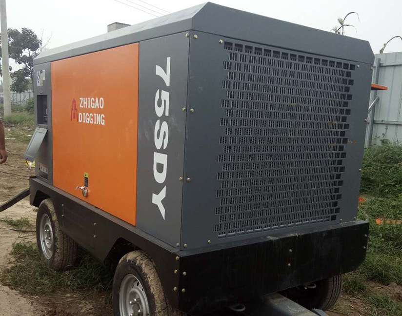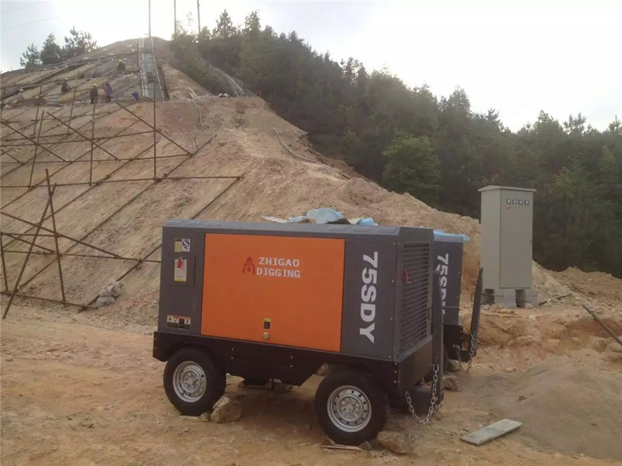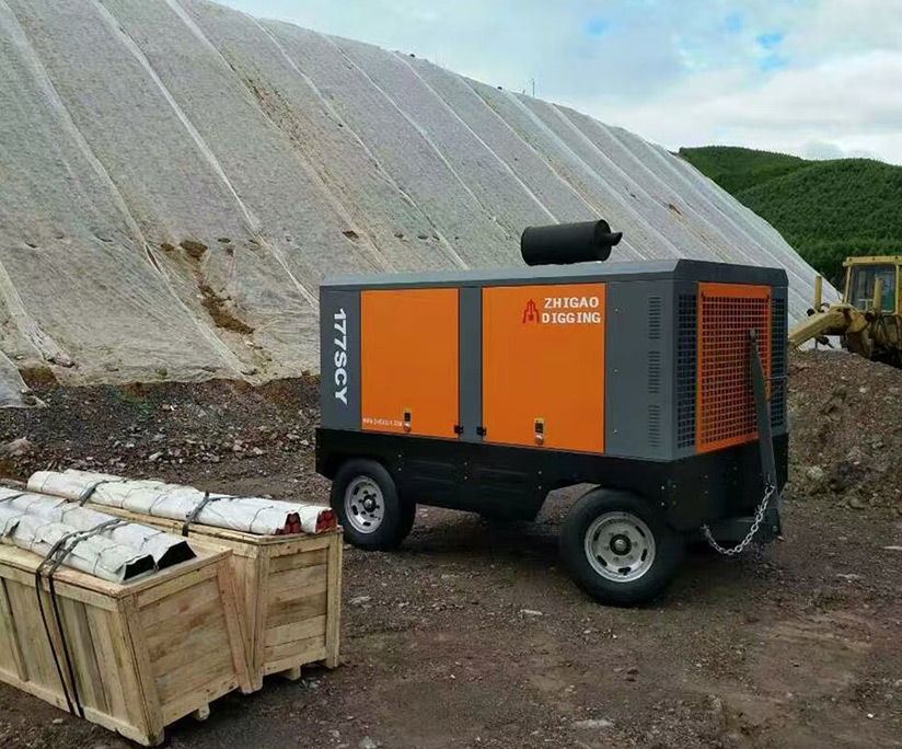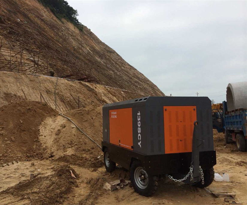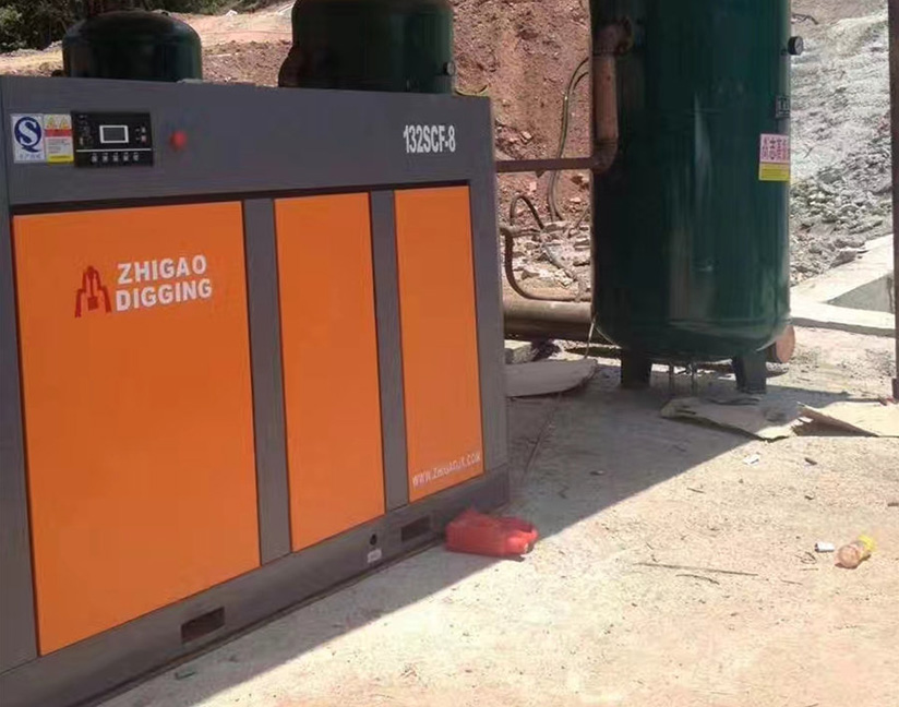新型工程螺桿式空氣壓縮機(jī)在工地圖片
